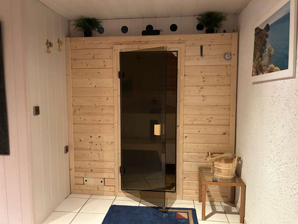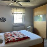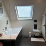 weitere Zimmer mit Laminatboden und heller Holzdecke, modernes Bad mit Fußbodenheizung, Einbaumöbeln,