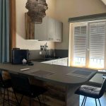 ausgestatter Küche im Landhausstil mit direktem Zugang zur überdachten Terrasse, zwei gemütlichen